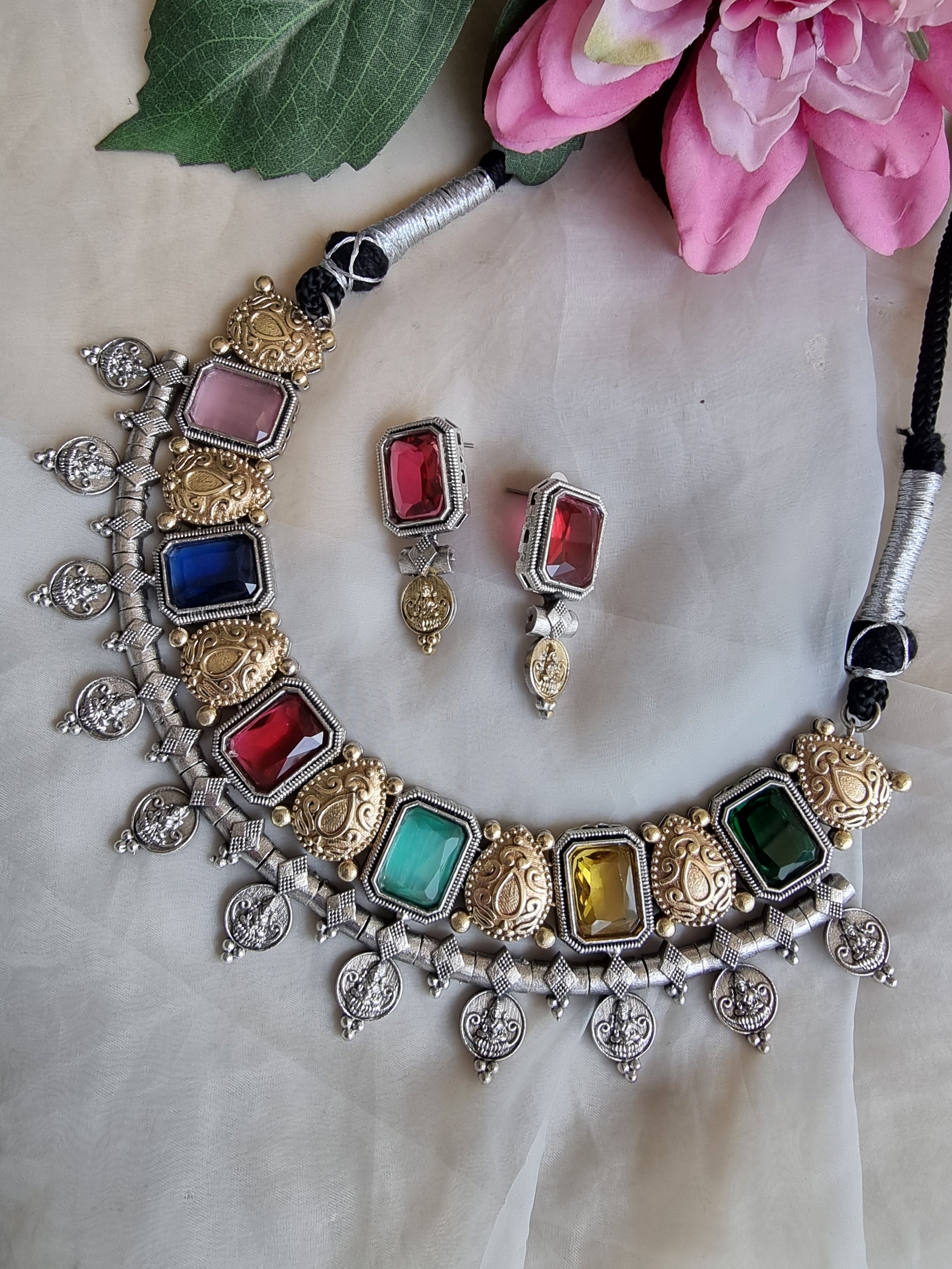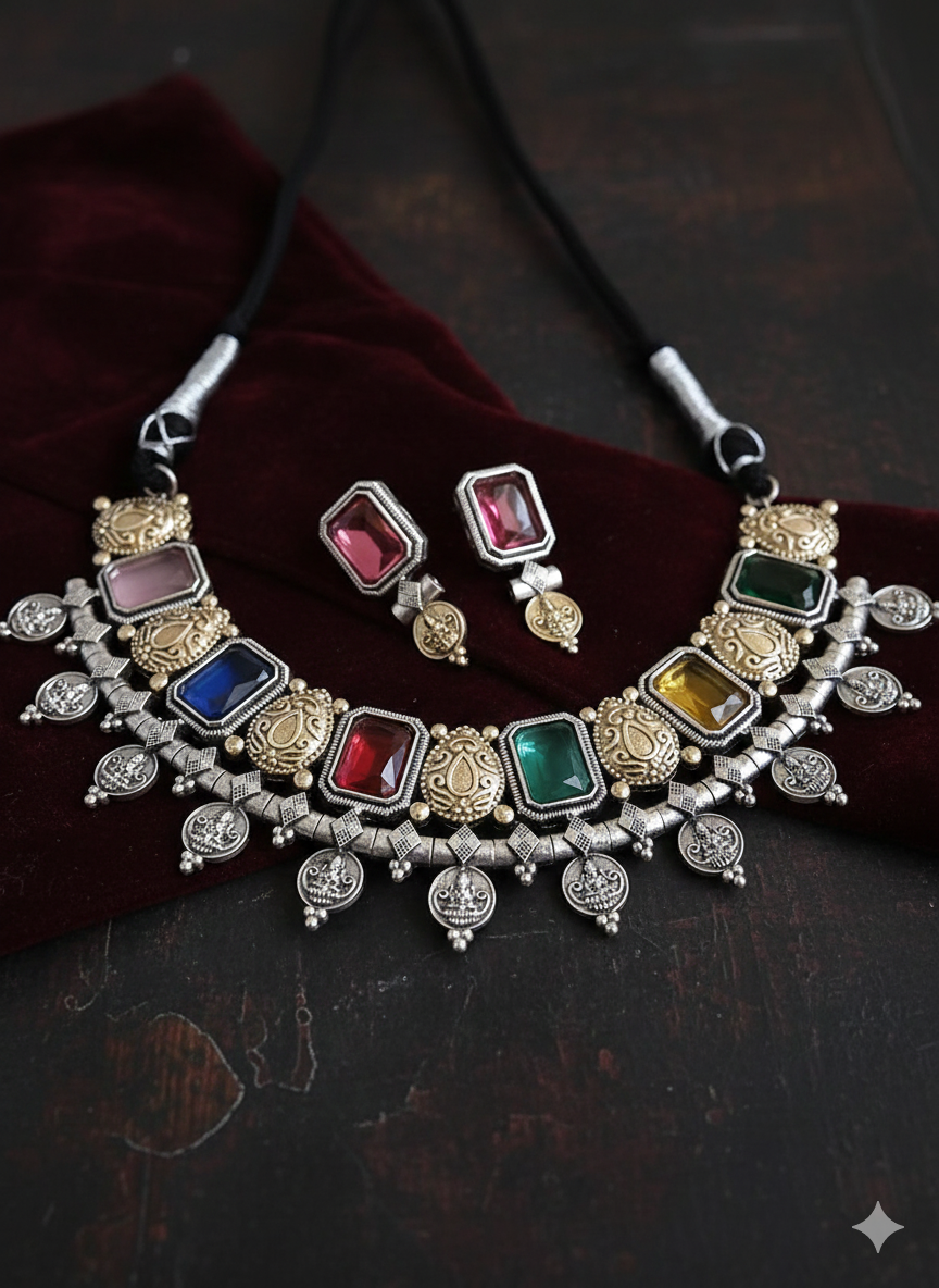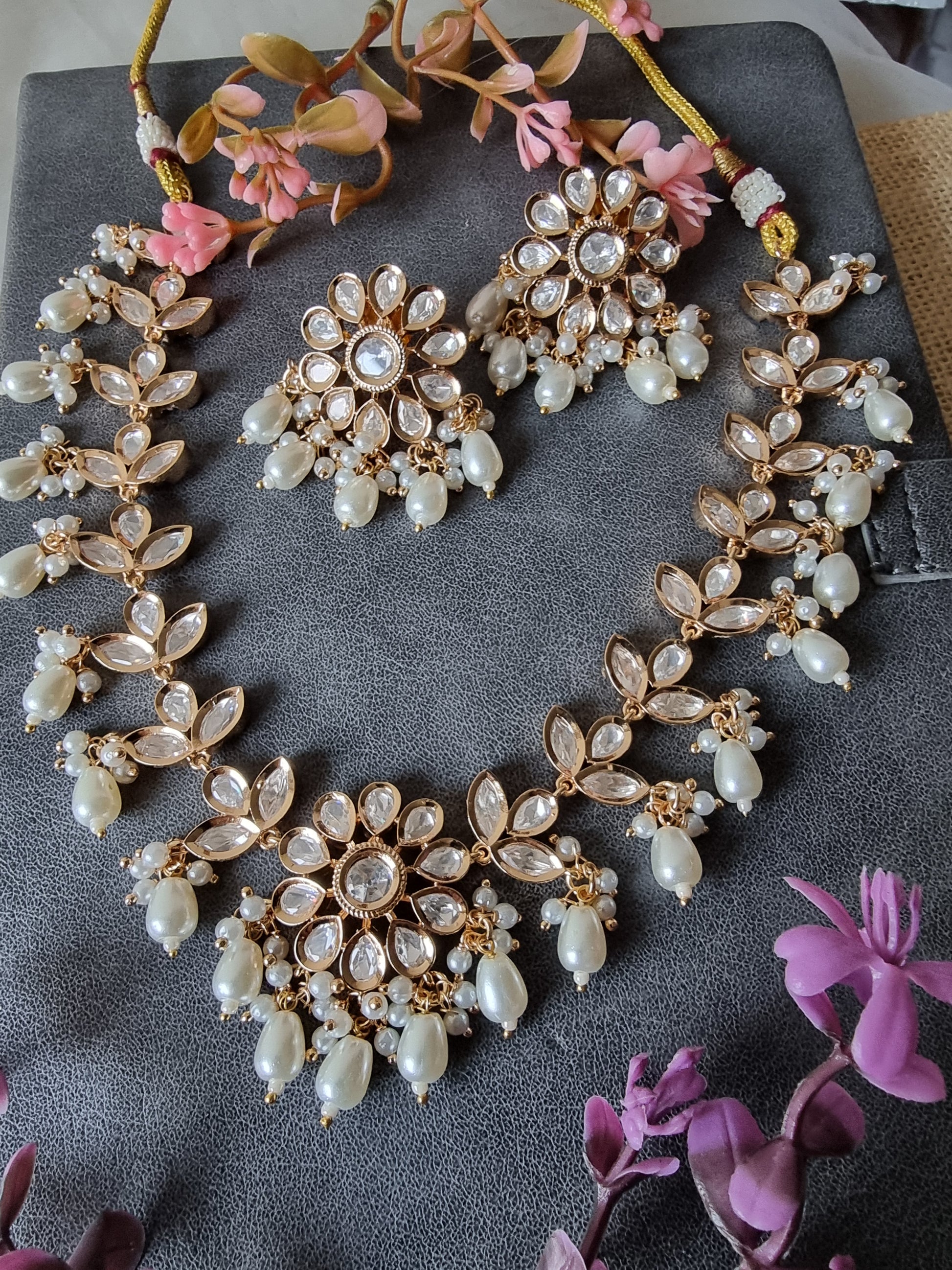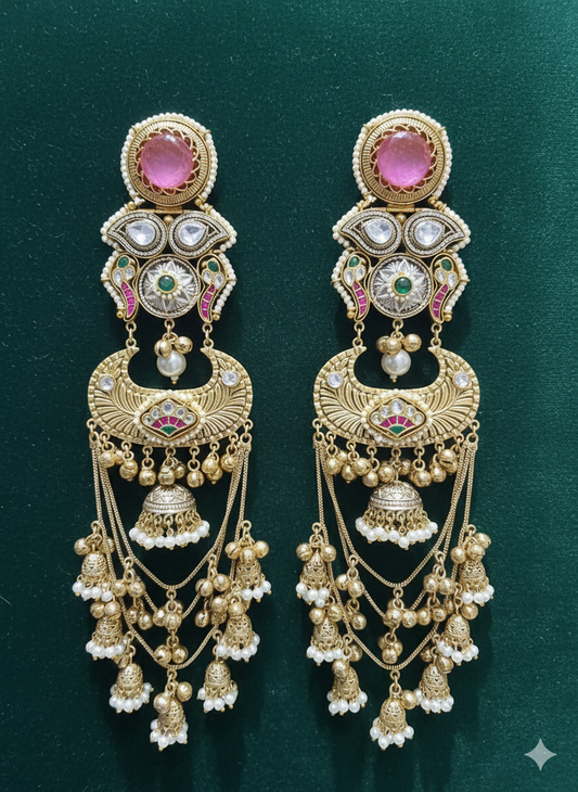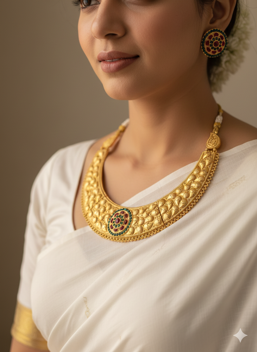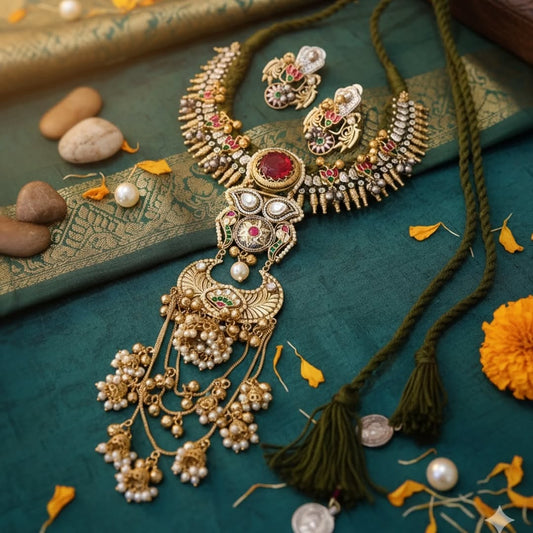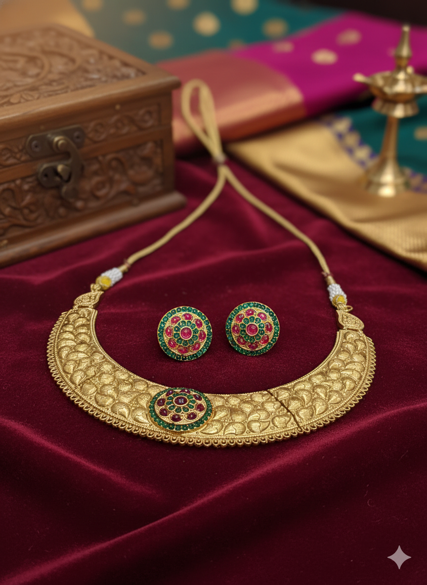 GOLD PLATED PADMAVAT NECKLACE SET WITH EARRINGS FOR WOMEN